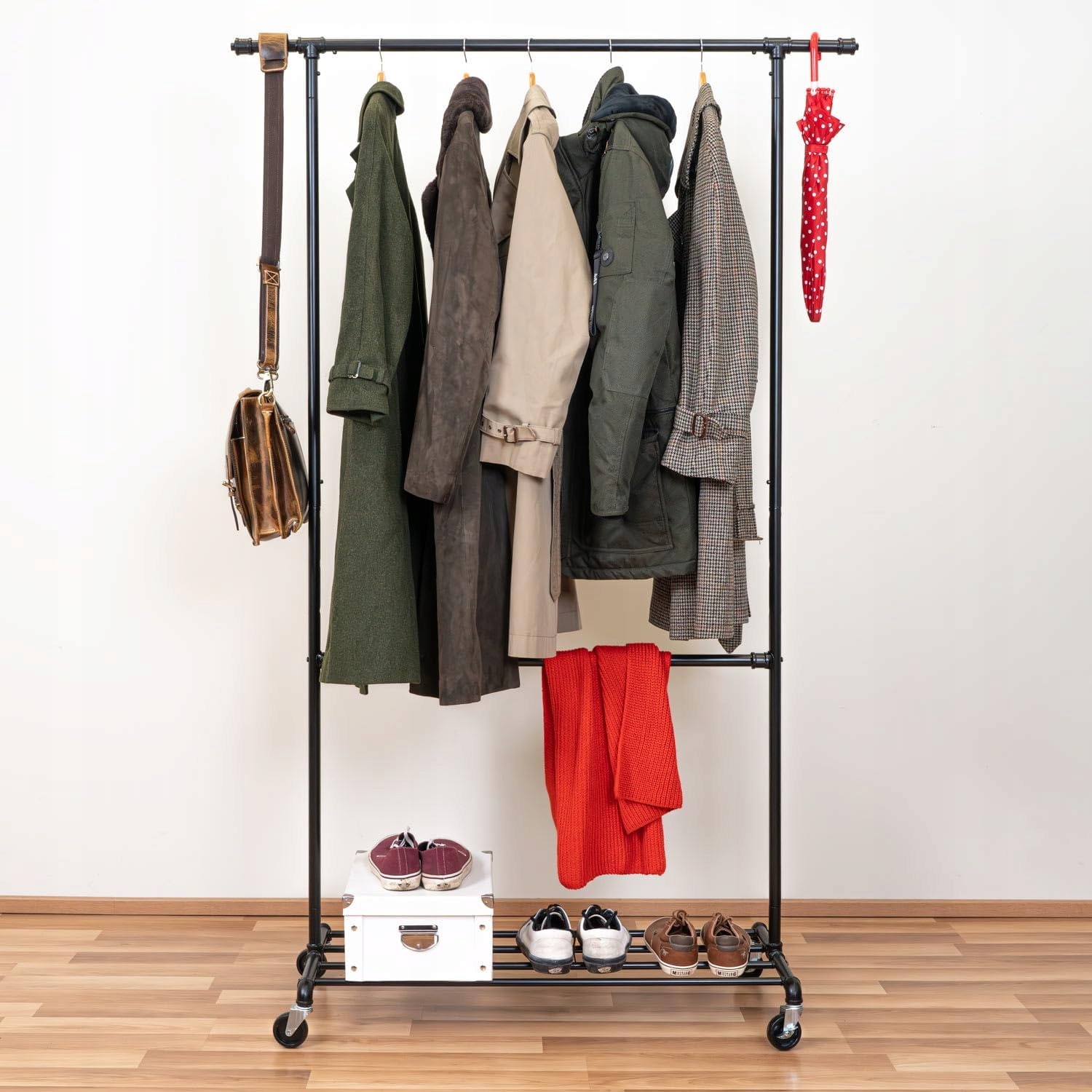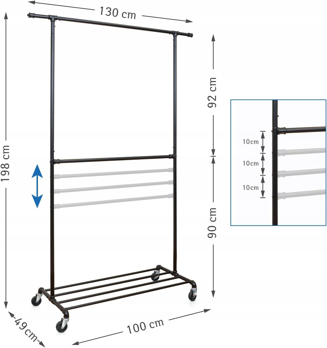 ✅ Dwa regulowane drążki na ubrania: górny drążek zapewnia miejsce na długie płaszcze lub suknie wieczorowe, podczas gdy dolny drążek jest regulowany na czterech wysokościach, aby spełnić Twoje indywidualne potrzeby